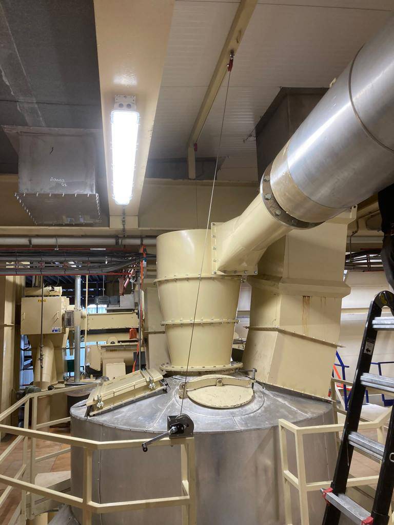 Other examples are continuous 10 t/h delumper, a cyclone, an pneumatic conveyer feeding system